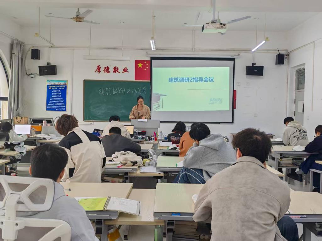 动员会上,彭梦娇老师首先介绍了本次建筑外出调研的重要性与要求。她强调外出建筑调研是建筑学学生提高设计水平的重要途径,在当下城市化进程的快速推进,建筑风貌的独特性和多样性越来越受到人们的关注的时代背景下,必须明确外出建筑调研的重要性,端正调研的态度,培养良好的调研习惯。同时,她提醒学生,调研并非简单的 “拍照记录”,而是需要带着问题去观察、带着思考去分析,从建筑的功能组织、建筑形态、功能布局、结构形式、材料构造等多维度挖掘隐藏在建筑背后的逻辑与价值。
