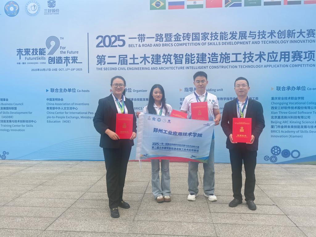 (文图/张亚利 编辑/郝亚勋 审核/靳晓亮)10月17日至19日,“2025一带一路暨金砖国家技能发展与技术创新大赛之第二届土木建筑智能建造施工技术应用赛项全国总决赛”在重庆安全技术职业学院成功举办。经过激烈角逐,我校建筑工程学院指导教师董鹏超、张亚利带领的本科组学生陈雨、吉美静荣获全国总决赛三等奖,两位指导教师在教师组赛项中表现优异,荣获全国总决赛二等奖,充分展现了我校在智能建造领域扎实的教学实力与人才培养成果。