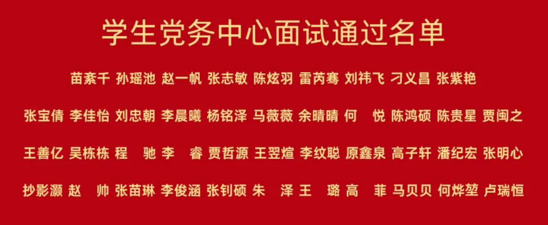 经过严格的筛选和面试,一批优秀的同学脱颖而出,下面对已经通过面试的名单进行公示: