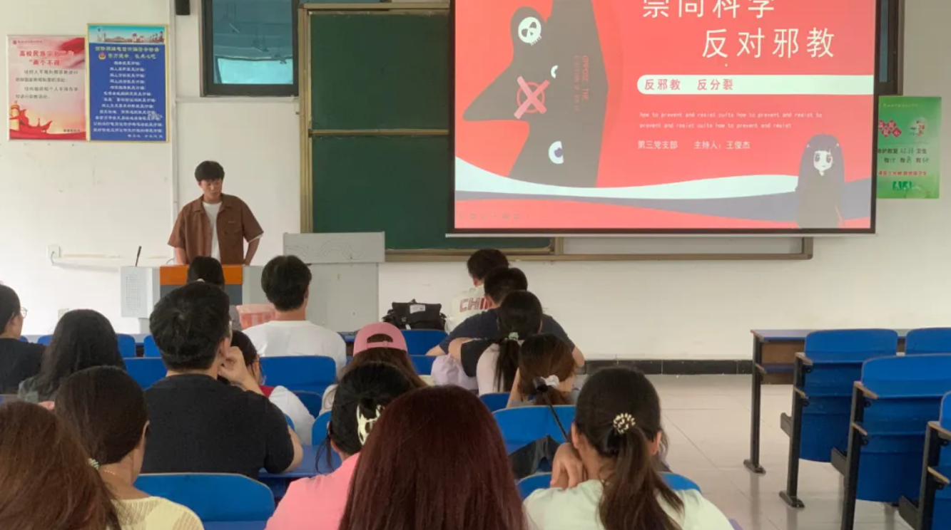 会议伊始,组织委员王俊杰同志发表重要讲话,强调新时代大学生应自觉抵制邪教侵蚀,以科学理论武装头脑、树立正确理想信念,并指出邪教常披宗教外衣散布迷信、危害社会秩序,需高度警惕。随后,王俊杰同志从历史唯物主义角度深入剖析邪教本质特征与危害性,结合大量案例展示邪教如何利用心理弱点实施精神控制、酿成个人与家庭悲剧,明确只有坚持科学精神、掌握辩证唯物主义方法论,才能有效识别和抵制邪教蛊惑。最后,全体成员共同观看反邪教警示教育片,让在场师生深受触动。