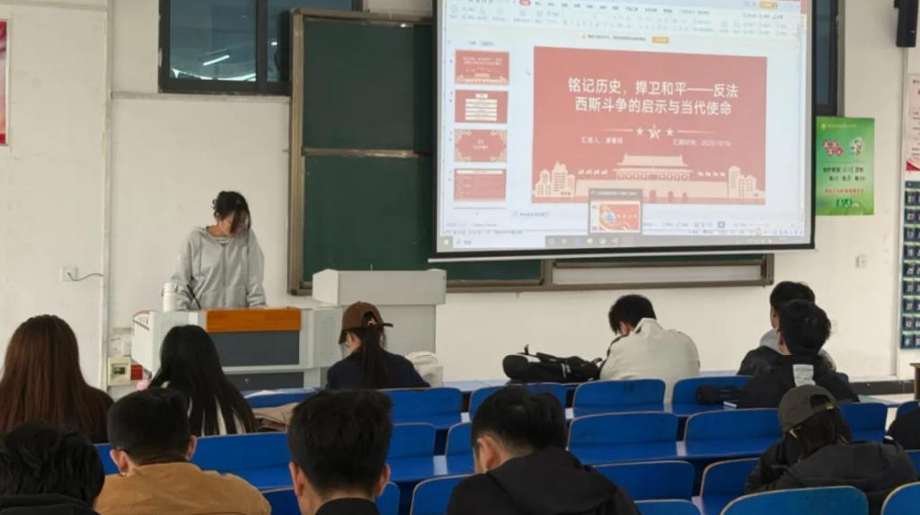 活动伊始,潘馨丽同志发表讲话,她强调,反法西斯战争的胜利是人类历史上正义战胜邪恶的伟大壮举,作为新时代党员,应当铭记那段历史,从中学到捍卫和平的力量。随后,她指出,法西斯主义曾给世界带来巨大灾难,我们必须时刻警惕,珍惜当下的和平。最后,她强调,只有铭记历史,传承反法西斯精神,秉持和平理念,才能在当代更好地为维护世界和平与发展贡献力量。