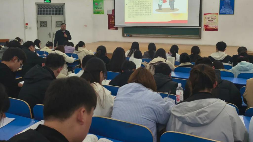 党课伊始,张珂老师围绕“党的纲领”展开讲解,系统阐述了党的最高理想与现阶段基本任务的内涵与关系,引导学员深刻理解党的政治方向和奋斗目标。随后,张老师重点讲解了党的组织原则与组织制度,通过典型案例分析组织生活在基层党组织建设中的重要作用,帮助学员明确遵守组织纪律、强化制度意识的重要意义。党课最后,张老师希望全体学员以此次学习为起点,持续深化对党的理论制度的学习理解,不断提升思想觉悟,以实际行动向党组织靠拢。