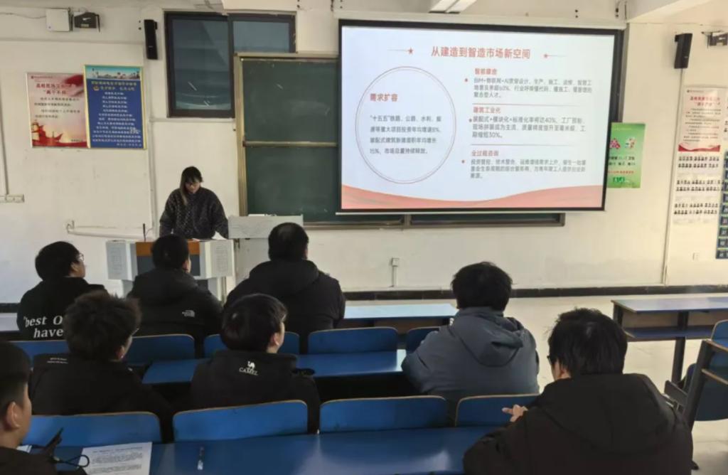 会议伊始,牛晨露同学明确了活动核心目标与四阶段议程,随后简要概括了 “十五五” 全会的时代背景及核心内容。接着,她带领全体成员系统学习全会核心精神,结合建筑工程领域的专业案例深入解读关键论述;部分支部成员围绕 “专业如何助力高质量发展” 展开交流探讨,分享了自身的思考与实践方向。最后,她倡议全体成员将全会精神融入日常学习与工作,鼓励党员同志充分发挥先锋模范作用,以实际行动践行高质量发展理念。