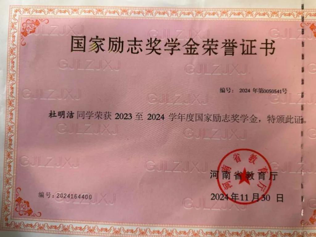 作为一名青年预备党员,杜明洁始终把思想政治建设放在首位。她认真学习习近平新时代中国特色社会主义思想,积极参加学校和学院组织的党课学习、主题党日活动,不断提高自身的政治理论素养和思想觉悟。担任班级团支书期间,她牵头组织开展“学习二十大,永远跟党走”“红色经典诵读”等主题团日活动,带领班级团员青年坚定理想信念,厚植爱党爱国情怀,所在团支部的凝聚力和向心力不断增强凭借优异的综合表现,杜明洁还荣获2023至2024学年度国家励志奖学金,这份荣誉既是对她过往努力的肯定,也成为她继续前进的动力。