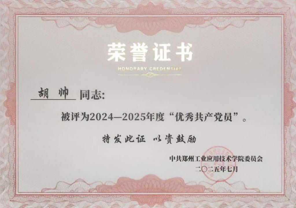 胡帅同志以坚定的信念、勤勉的态度在思想、学业、工作与志愿服务中全面绽放光彩,用一张张荣誉证书诠释了青年中共党员的责任与担当。他始终践行服务他人、砥砺自我的初心,既是潜心钻研的学霸,也是尽职尽责的学生骨干,更是热心奉献的志愿先锋,堪称新时代大学生的优秀榜样,未来也必将在人生道路上续写更多精彩篇章。