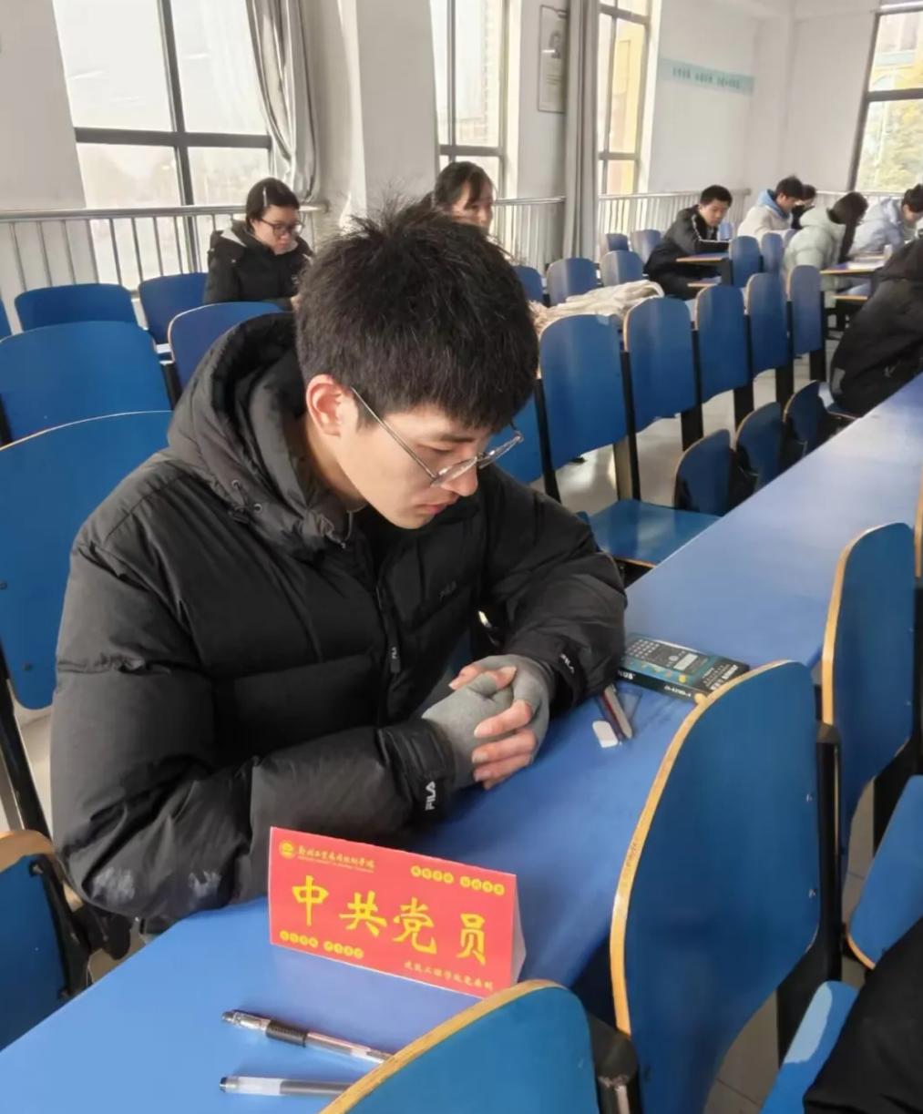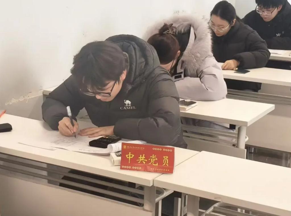 会议伊始,全体学生党员携带“诚信考试”立牌,并在带队党员的组织下有序进入对应考场。随后,党员们在各自座位上主动摆放立牌,以醒目方式向身边同学传递诚信应考的信号,不少同学看到立牌后,也主动整理桌面、检查考试用品,营造出严肃自律的考场氛围。接着,考试正式开始,党员们严格遵守考场纪律,认真答题,以实际行动践行诚信承诺,成为考场上的“无声榜样”。考试最后,监考老师对党员们的表现给予肯定,并表示这种“亮身份、树标杆”的做法有效带动了整个考场的良好风气。