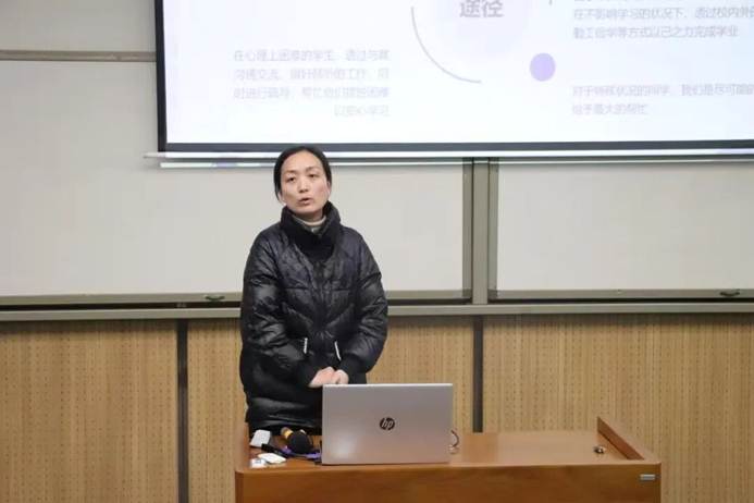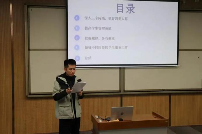 蒋雯老师以“新生适应”为核心切入点,聚焦新生在学业转型、人际沟通、生活独立三大困惑,提出“三维发力”工作法。通过组建朋辈导师团、开展素质拓展活动、开设生活小课堂,为新生搭建成长桥梁。她分享了学生闵志鹏从内向拘谨到主动牵头班级学习小组的转变故事,诠释了辅导员“爱心、责任心、同理心”的育人初心,彰显了“成长合伙人”的角色定位。