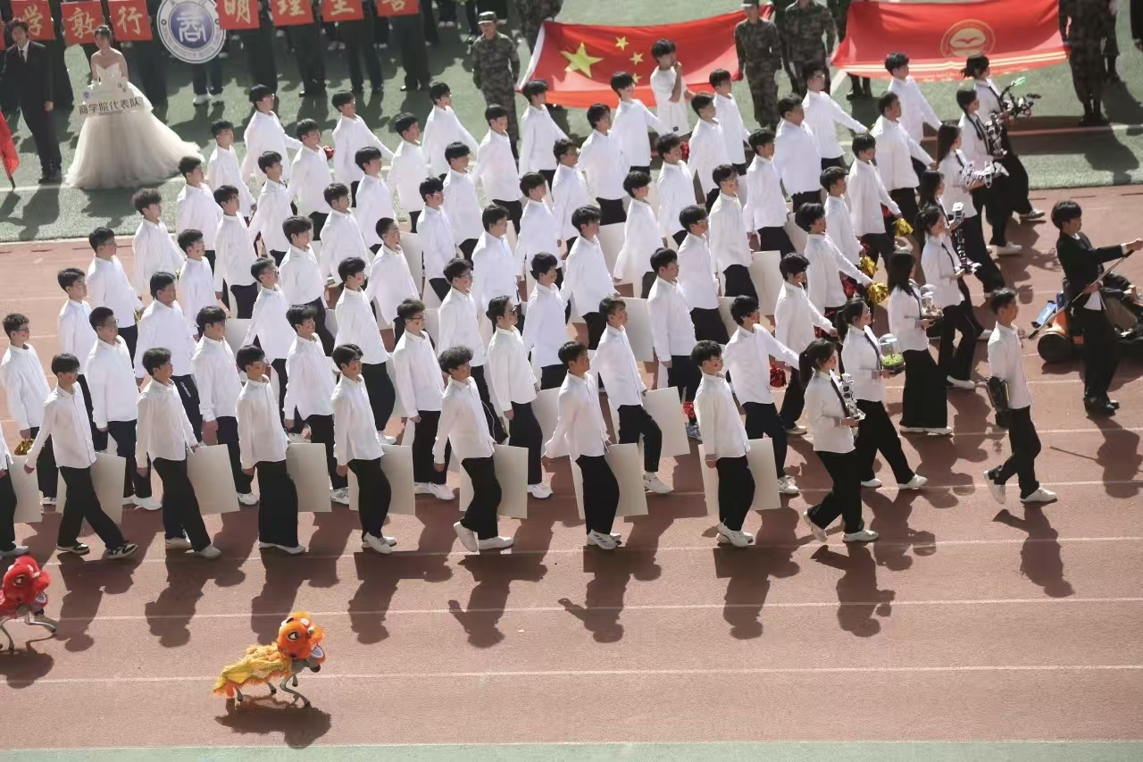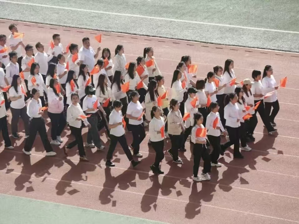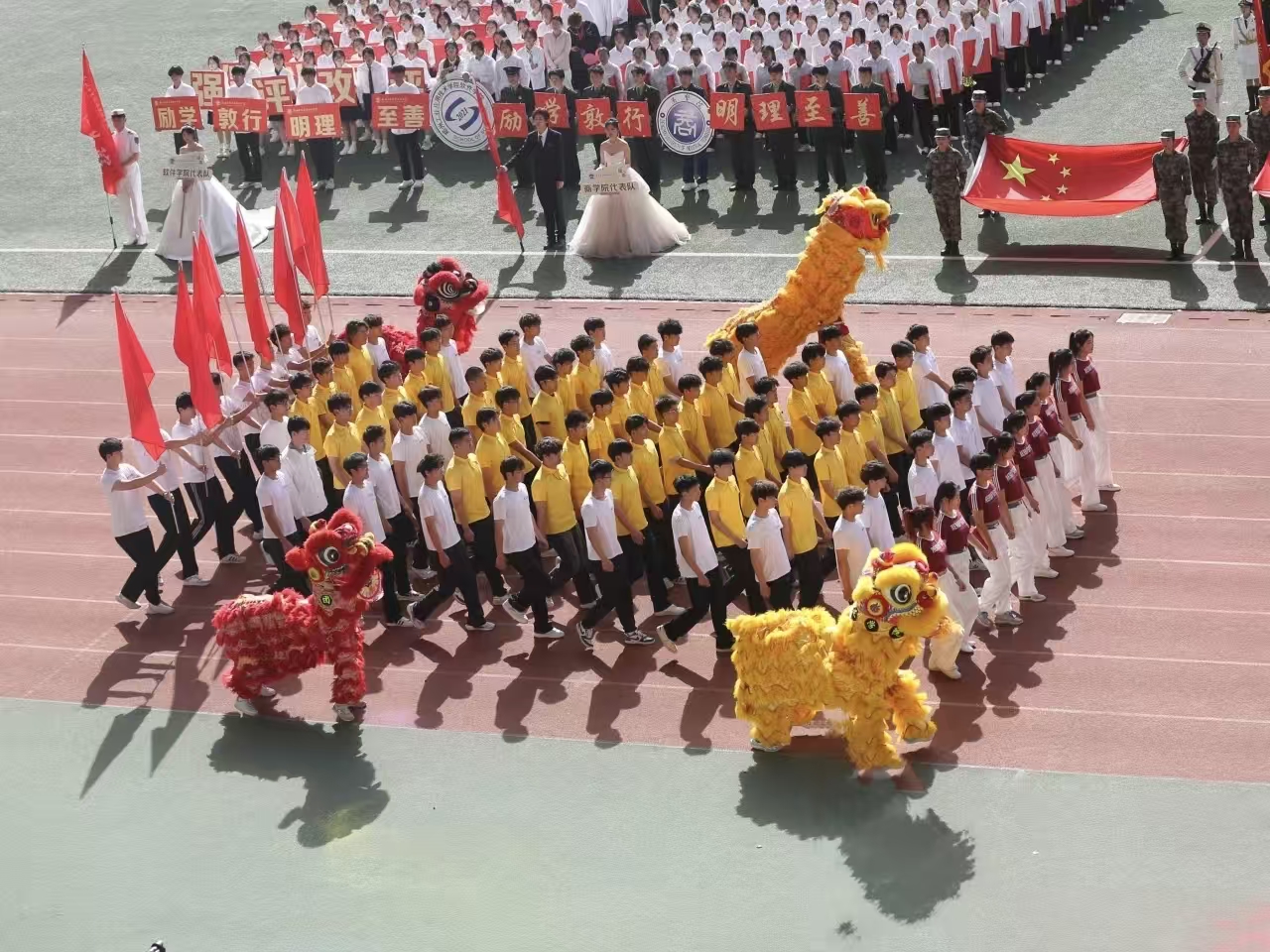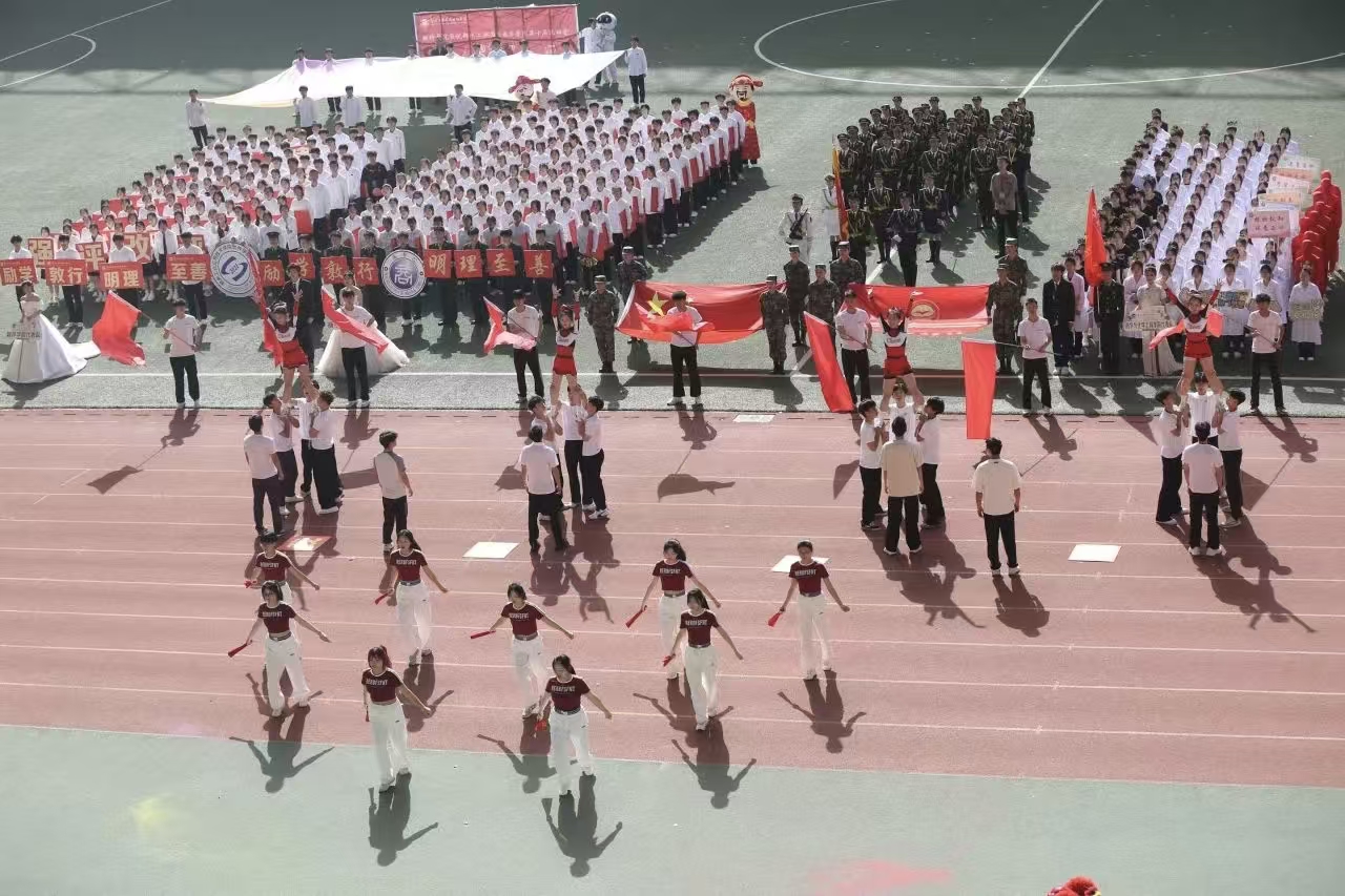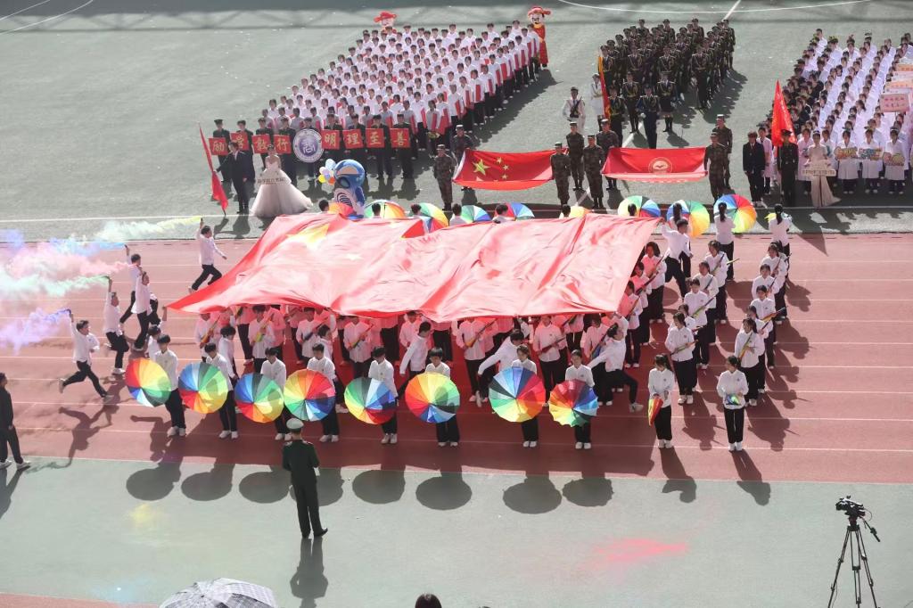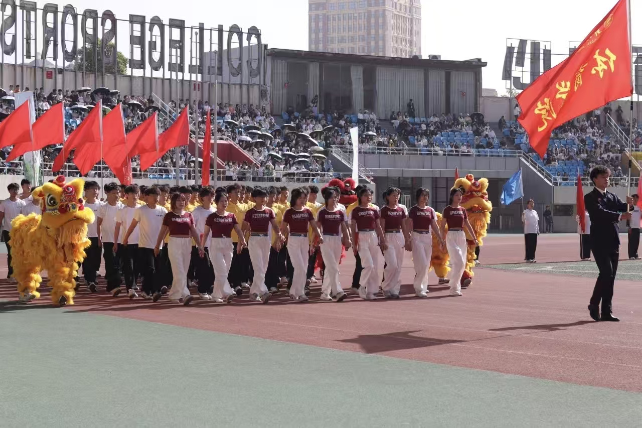 瞧那整齐的方阵 坚定的步伐踏响青春的鼓点 目光中洋溢着自信与无畏 嘹亮的口号回荡在整个校园 喊出团结的力量胜利的决心