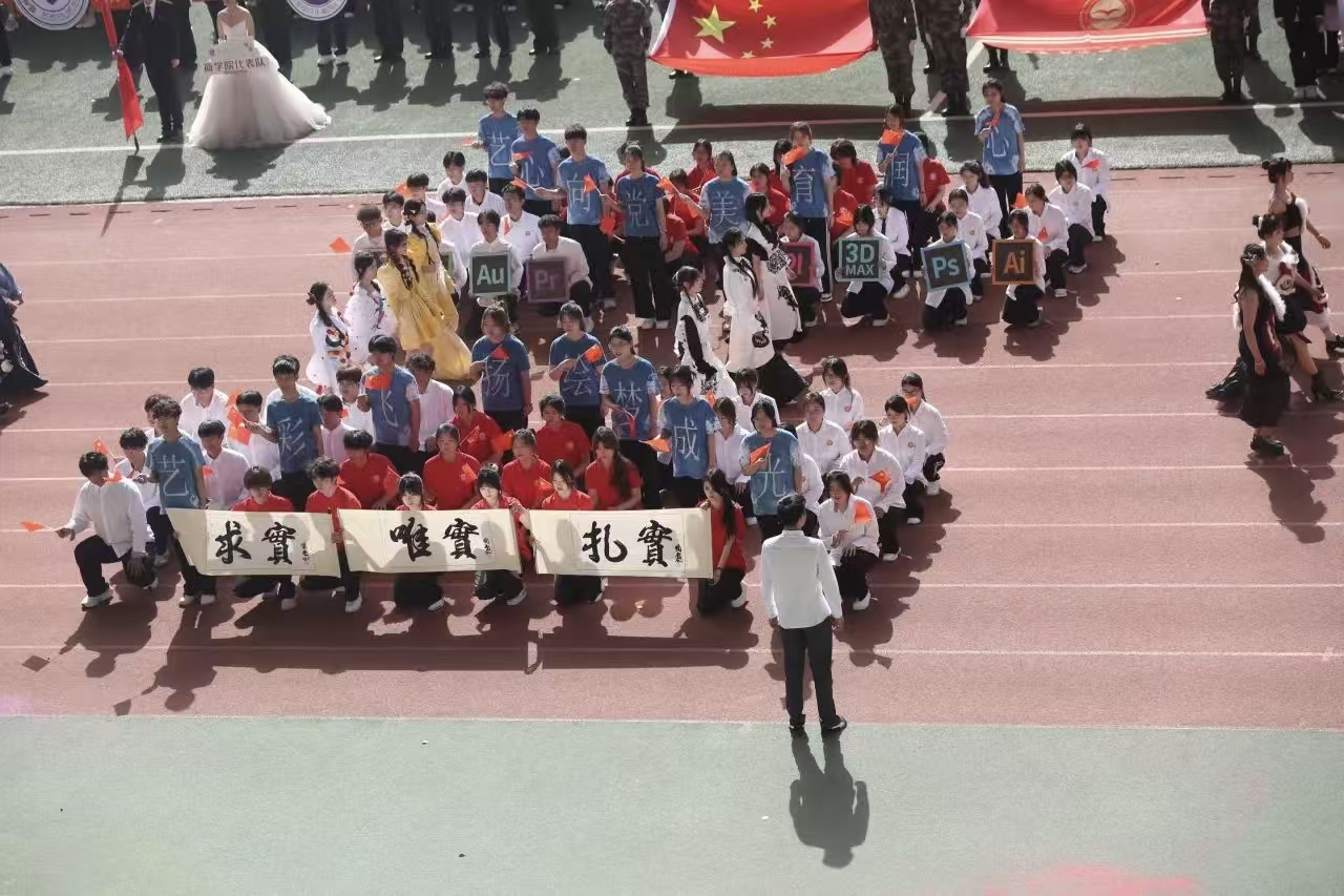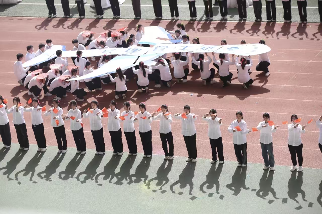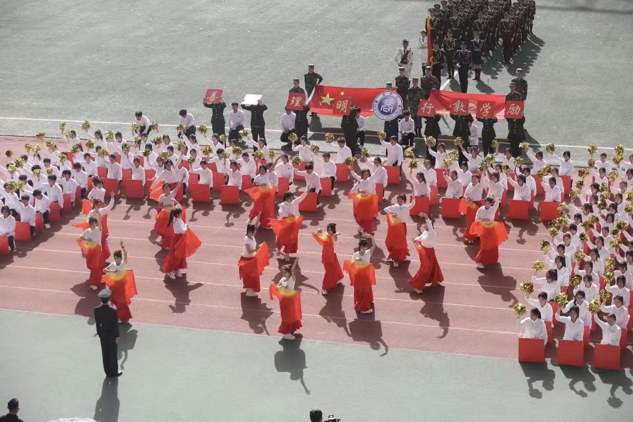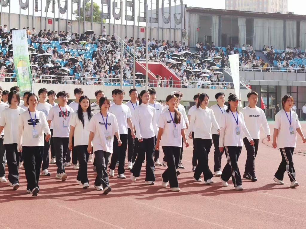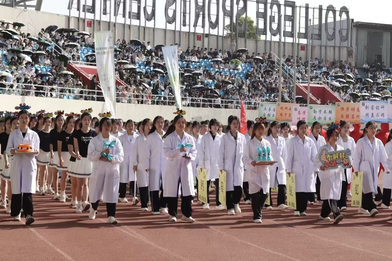 瞧那整齐的方阵 坚定的步伐踏响青春的鼓点 目光中洋溢着自信与无畏 嘹亮的口号回荡在整个校园 喊出团结的力量胜利的决心