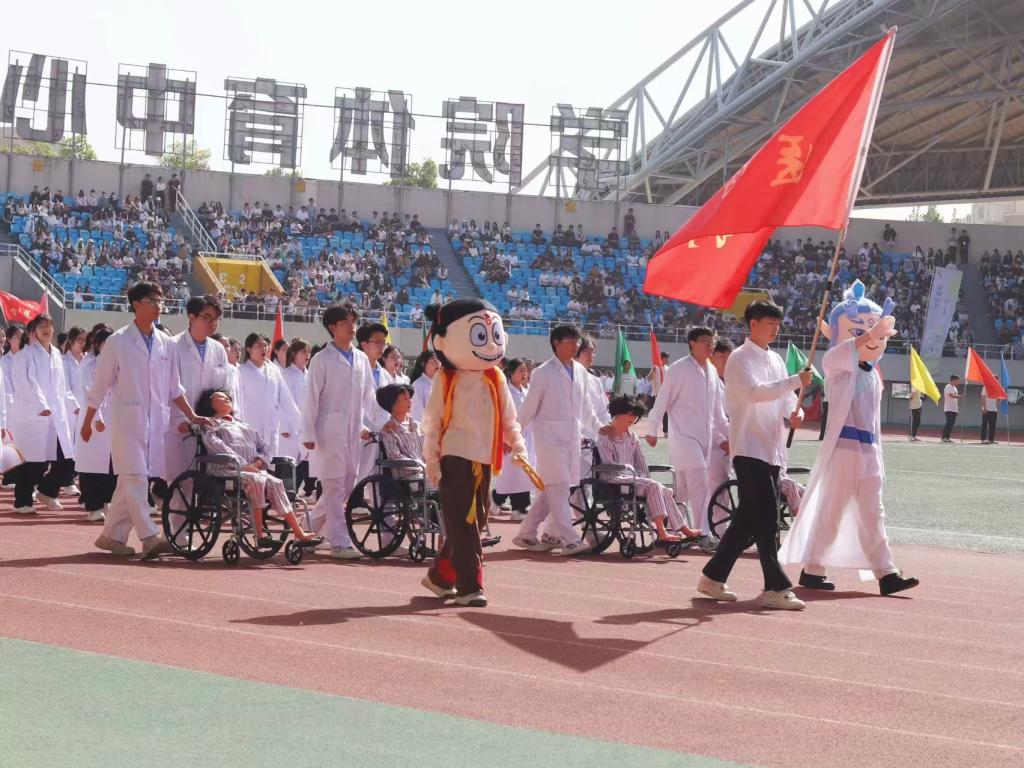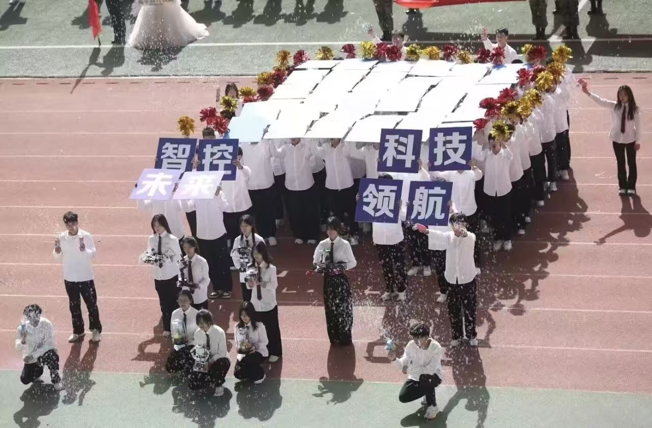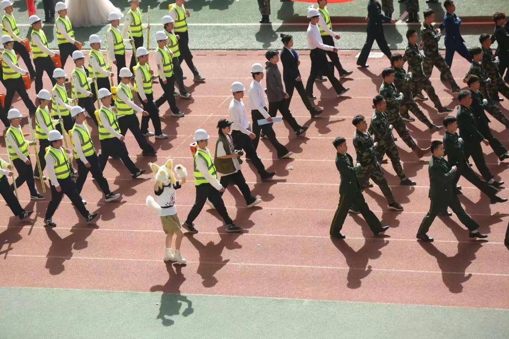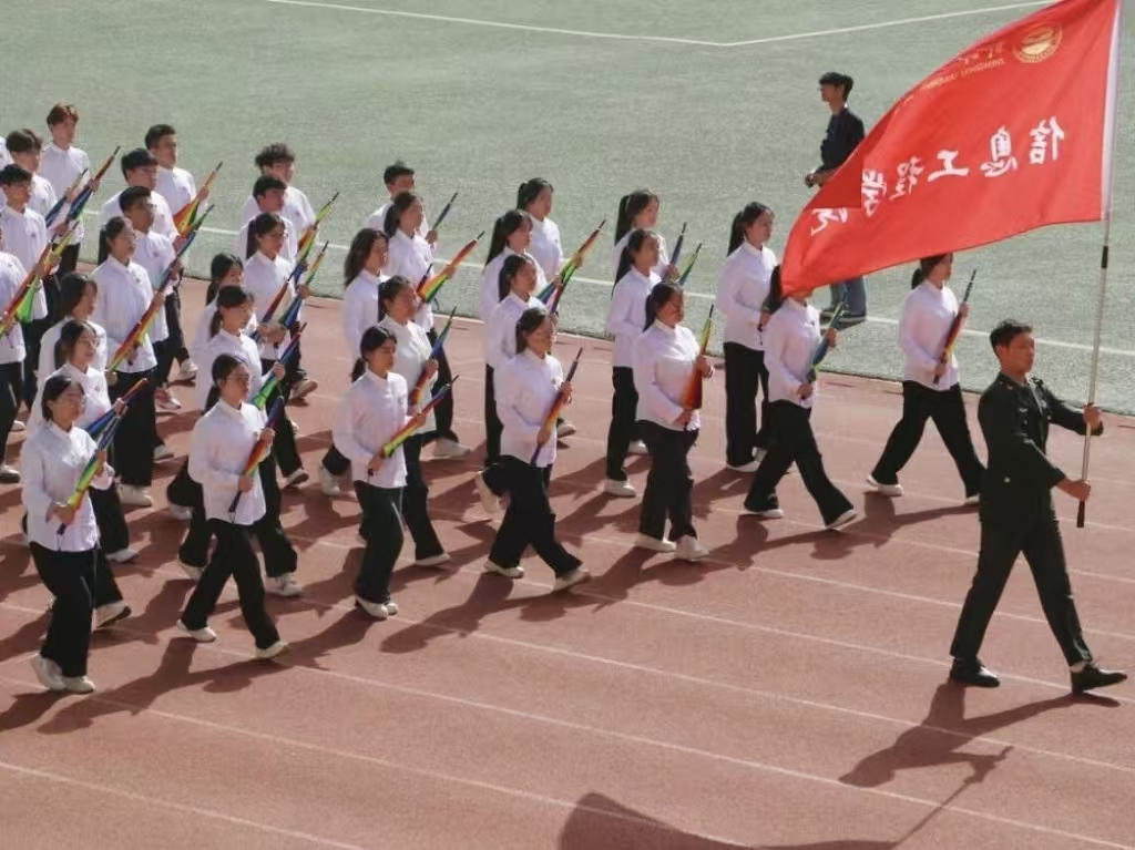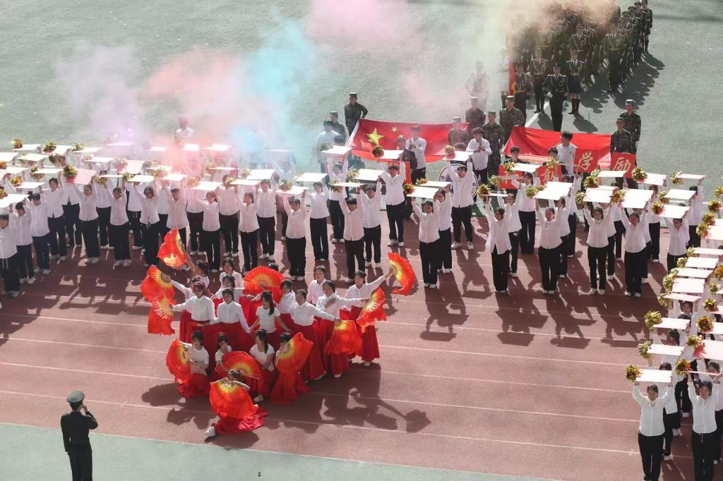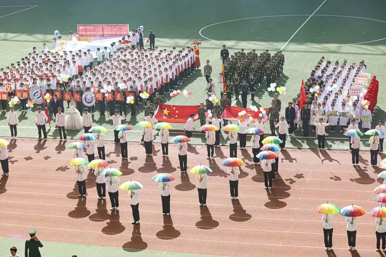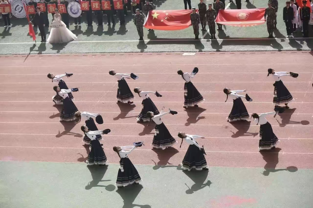 瞧那整齐的方阵 坚定的步伐踏响青春的鼓点 目光中洋溢着自信与无畏 嘹亮的口号回荡在整个校园 喊出团结的力量胜利的决心