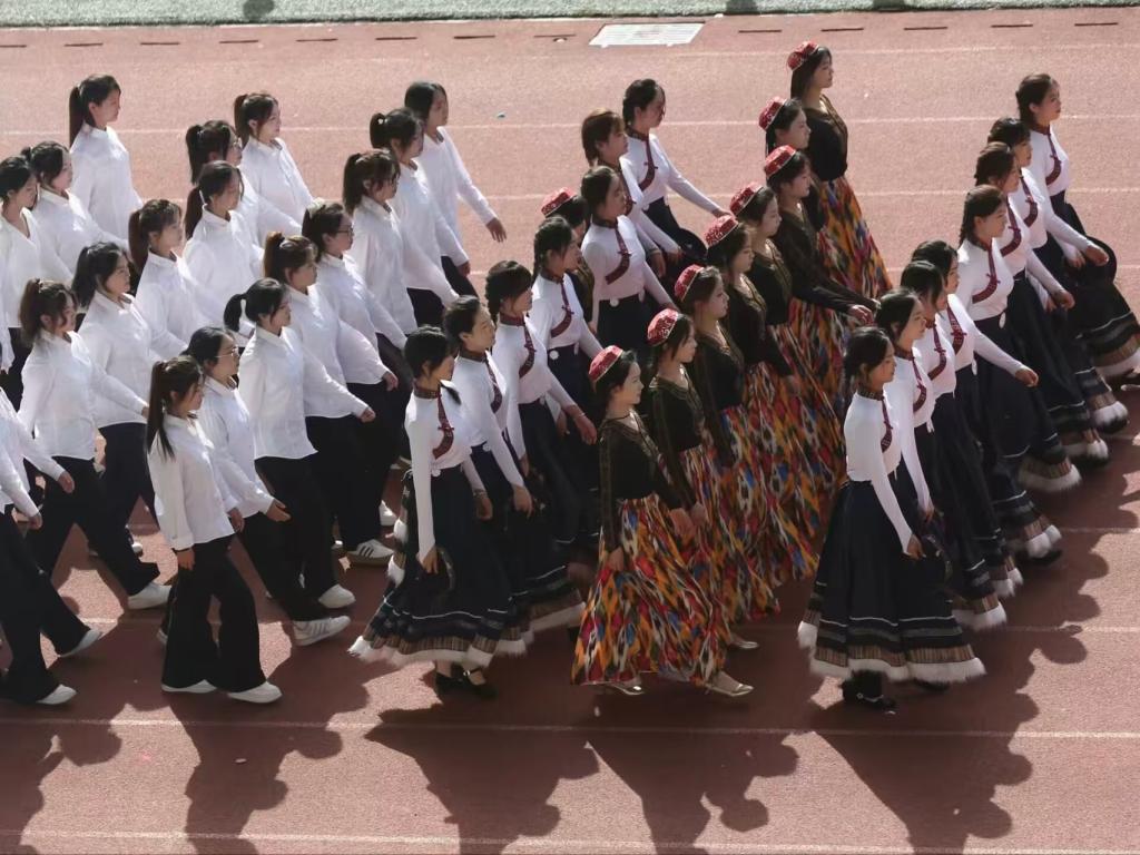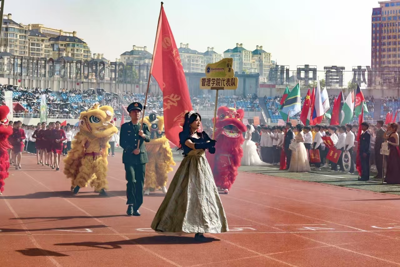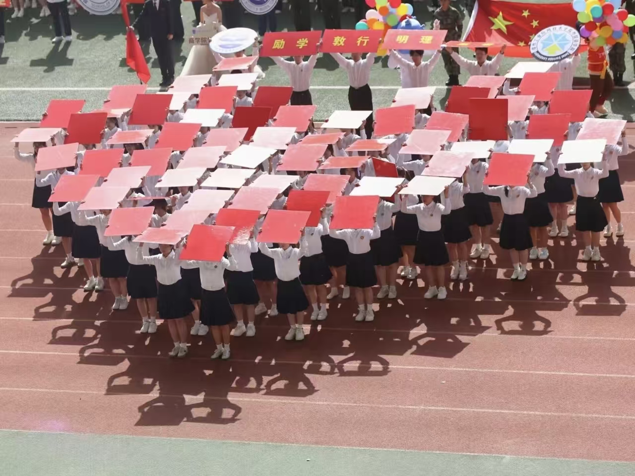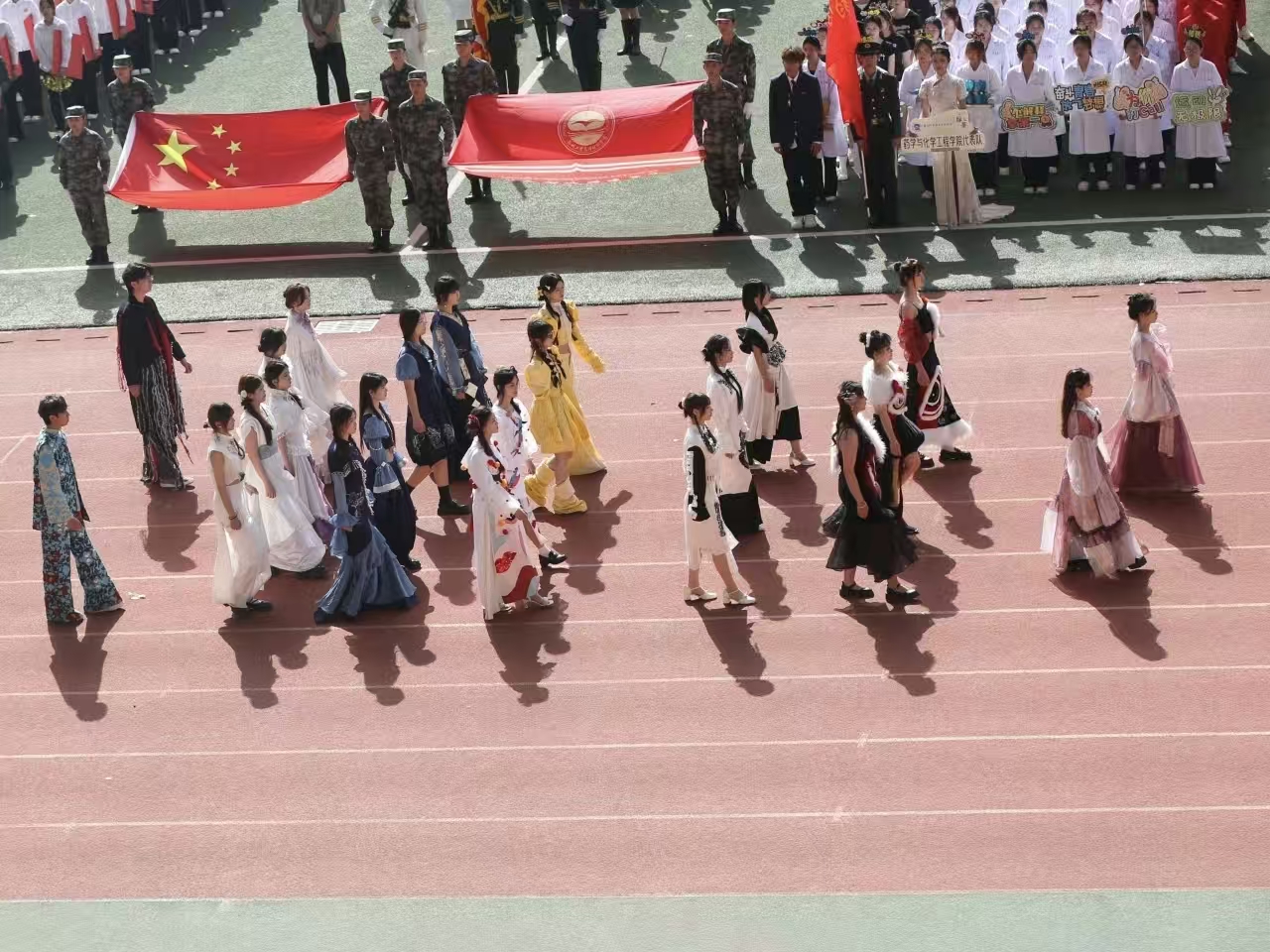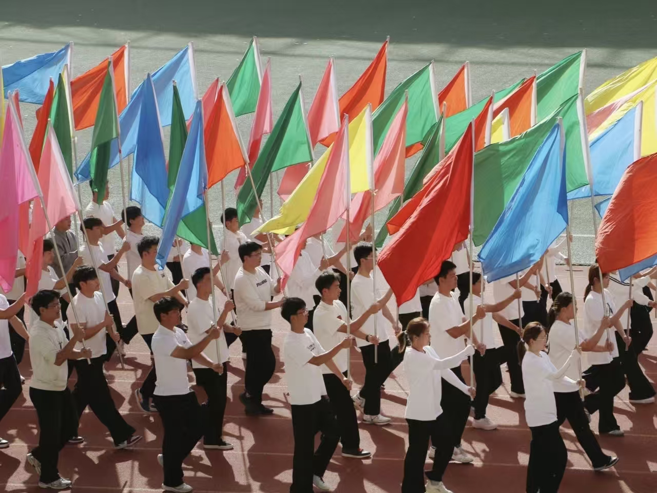 瞧那整齐的方阵 坚定的步伐踏响青春的鼓点 目光中洋溢着自信与无畏 嘹亮的口号回荡在整个校园 喊出团结的力量胜利的决心