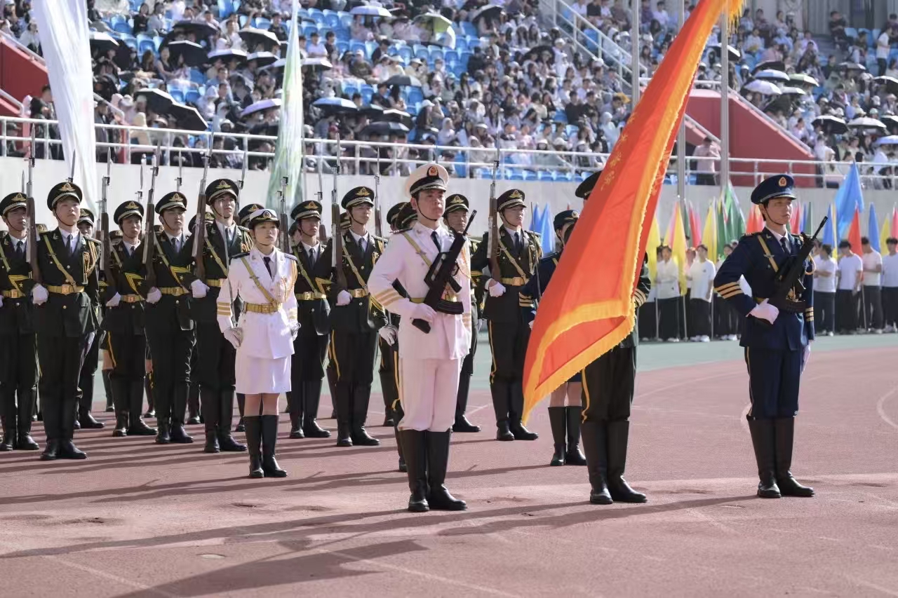 庄严肃穆的升旗仪式 将运动会的氛围推向高潮
